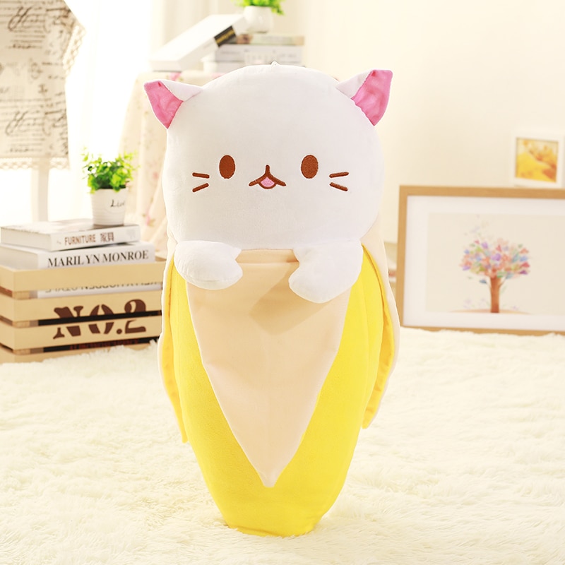 Bananya Plushies - White Cat In Banana Plush Stuffed